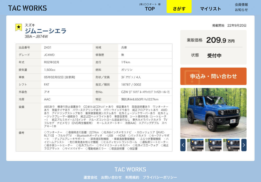 備考欄などに可否の説明がなければ、直接お客様から販売者様にお問い合わせいただき、実車の確認等していただくことは可能です。